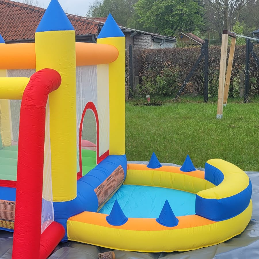 Pflegeanleitung: ‎Nach jeder Spielsitzung wird empfohlen, die Hüpfburg an einem trockenen und belüfteten Ort aufzustellen, damit sie gründlich trocknen kann, bevor sie zusammengeklappt wird.